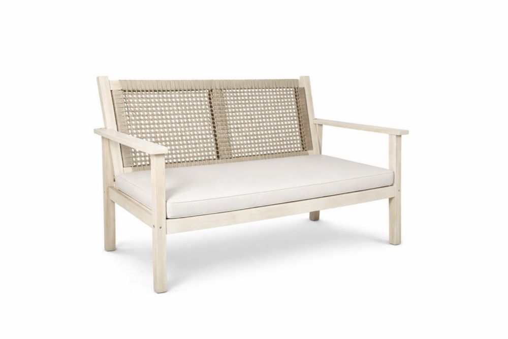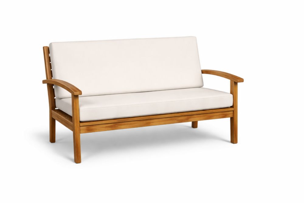 Canapé 2 Places en bois massif avec Coussins en Tissu Écru